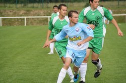 Sous une pluie battante... ce dimanche, l'aosp recevait au Landas les équipes de Saint Roch et Saint Malo de Guersac. A 13h la réserve avait à coeur de se racheter du weekend dernier avec ce match nul 3 /3. Sur un terrain lourd les ciels et blancs tardaient à se mettre dans le match.. quelques occasions mais pas grand chose a se mettre sous la dent. Les visiteurs tenaient bien place. Mi-temps 0.0 A la reprise l'Aosp se montrait plus incisive... Tel était le mot de Dominique Noblet à la m-itemps. A la 65' côté droit le défenseur Guillaume Chauviré combine bien avec Sebastien Cantin et Maxime Avenard, celui-ci lança en profondeur Fréderic Bauny qui s'infiltra dans la surface avant de se faire sècher. L'arbitre Mr Poulin montra immédiatement le point de pénalty. Pénalty transformé par Maxime Avenard ( voir photo )qui trompa le gardien Lecoq auteur d'excellentes parades. 1 but à 0 le score ne changera plus. Mais à noter que Saint- Roch aurait pu égalisé à la fin sur une tête à bout portant sortit en deux temps par le gardien Pierre Belliot et le défenseur Maxime Avenard. 4 points de plus au compteur.... toujours première de son groupe avec 22 points. Prochain RDV en Challenge à Saint- Dolay 2 à 14 h 30. A 15h la première affrontait la D de Saint Malo... Match maitrisé du début à la fin. ( source Baptiste Lanoë ). Mi-temps 1 but a 0 pour Pontchâteau grâce à Romain Monnier auteur d'une belle frappe des 20 mètres dans le petit filet. Au retour des vestiaires , les ciels et blancs continuaient à dérouler le jeu... Charly Colin, et surtout Jérome Avenard très en vue lors de cette rencontre ( Triplé ) ont aggravé le score. Score final 5 buts à 0 . Avec un match en retard face à Savenay, l'AOSP caracole dans le haut du classement avec zéro dafaite à ce jour. Prochain RDV à Nozay 2 à 14 h 30 pour l'équipe fanion la semaine prochaine en Challenge. La Guich'