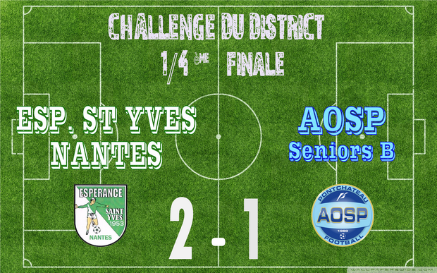 Disputant les quarts de finale du Challenge de District, nos seniors B se sont inclinés en terre Nantaise ce dimanche. Une défaite (1-2) qui stoppe les hommes de Laurent à la conquête du trophée. Il faut maintenant se concentrer sur le championnat dès dimanche prochain face à Vay. Allez les "Ciels & Blancs", encore cinq matchs de coupe à jouer.