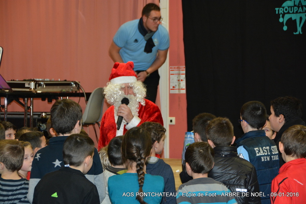 L’Arbre de Noël de l’école de foot des "Ciels & Blancs"», s’est clôturé par le passage du célèbre homme vêtu de rouge et blanc. Personne de tradition, il a distribué des friandises et une belle poche, au logo de l’AOSP, pour ranger les chaussures de nos p’tits footeux.