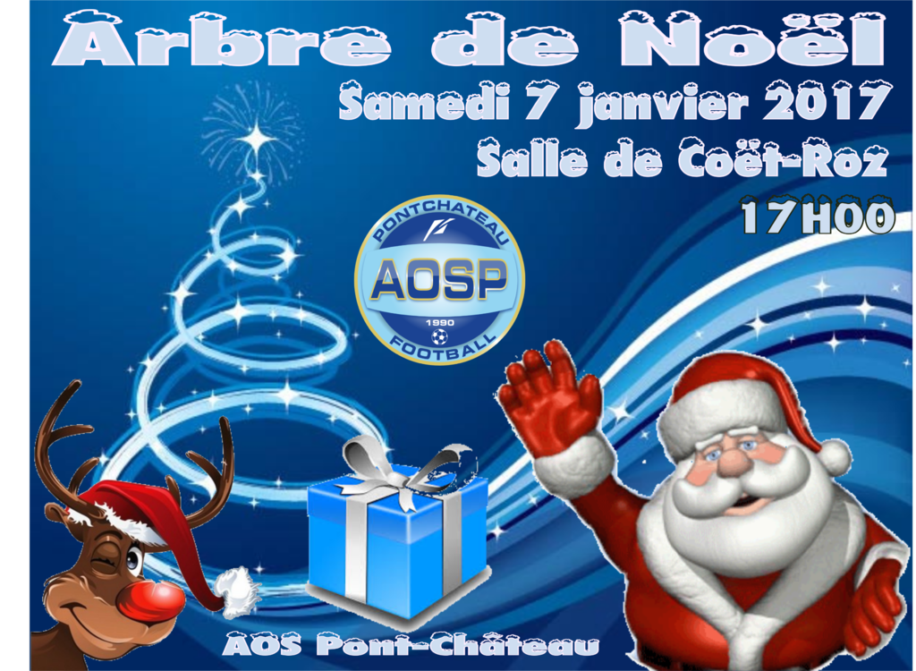 Comme l'an passé, le traditionnel arbre de Noël 2016 organisé par l'AOSP se déroulera salle de Coët-Roz, le samedi .......7 janvier 2017.