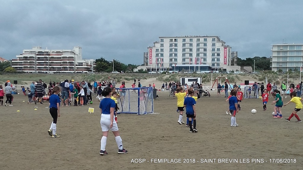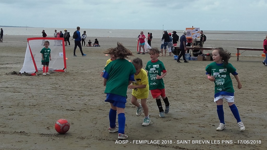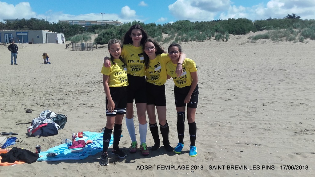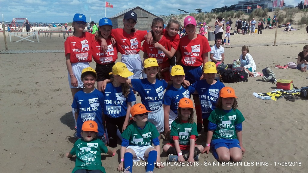Ce dernier dimanche, la journée 100% Foot Féminin sur la plage de Saint Brévin Les Pins a battue les records de participantes. Parmi les 1202 joueuses sur la plage de l’océan, on comptabilisait 25 filles sous la bannière de l’AOSP réparties en 5 équipes (1 U6/U7, 1 en U8/U9, 2 en U12/U13 et 1 en U14/U15).
