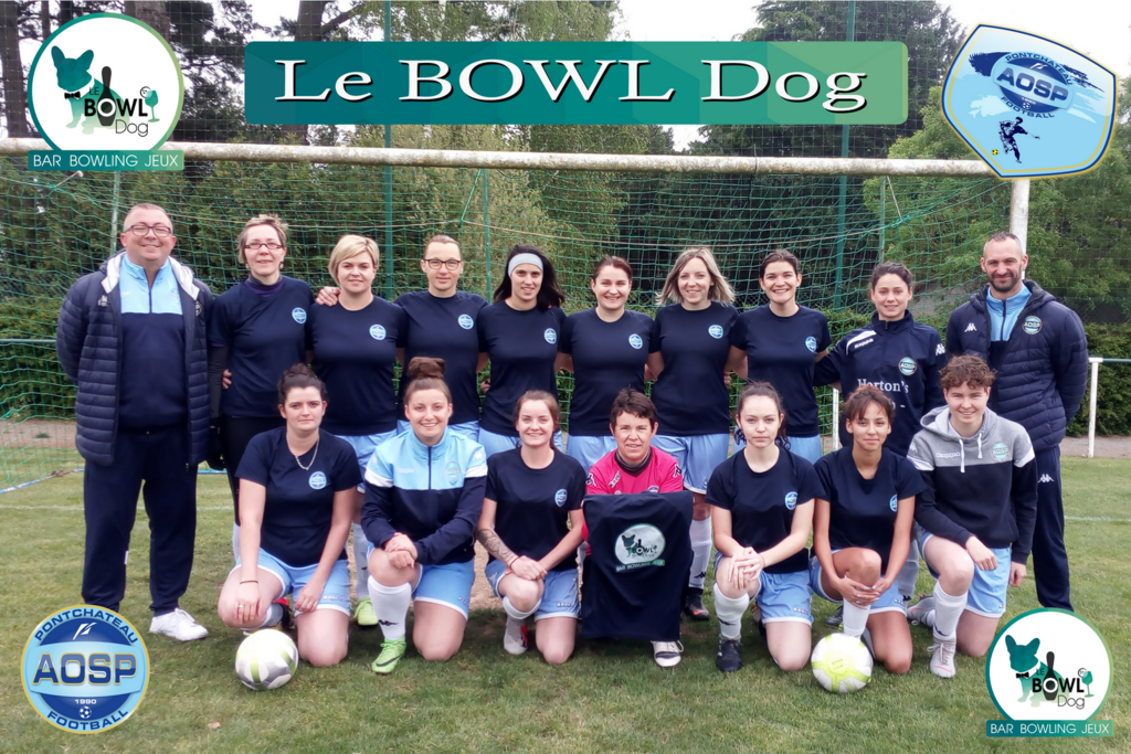 Le Bowldog, bar à bières et cocktails, Bowling, food truck (snack à la française), jorkyball (foot en salle 2 VS 2), structure gonflable (Château). jeux divers (billards, fléchettes...) située à Pont-Château, parc commerciale Rive Sud, a offert un jeu de maillots "échauffements" aux demoiselles seniors des " Ciels & Blancs ".
