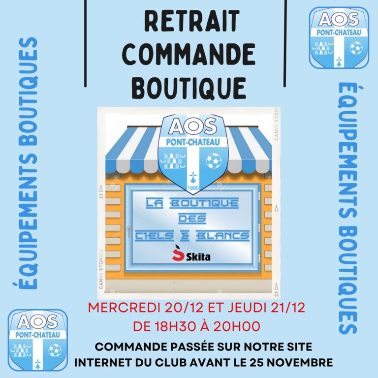 Il y aura 2 dates de permanences pour venir récupérer vos commandes pour les personnes ayant reçu un mail de notre responsable boutique: