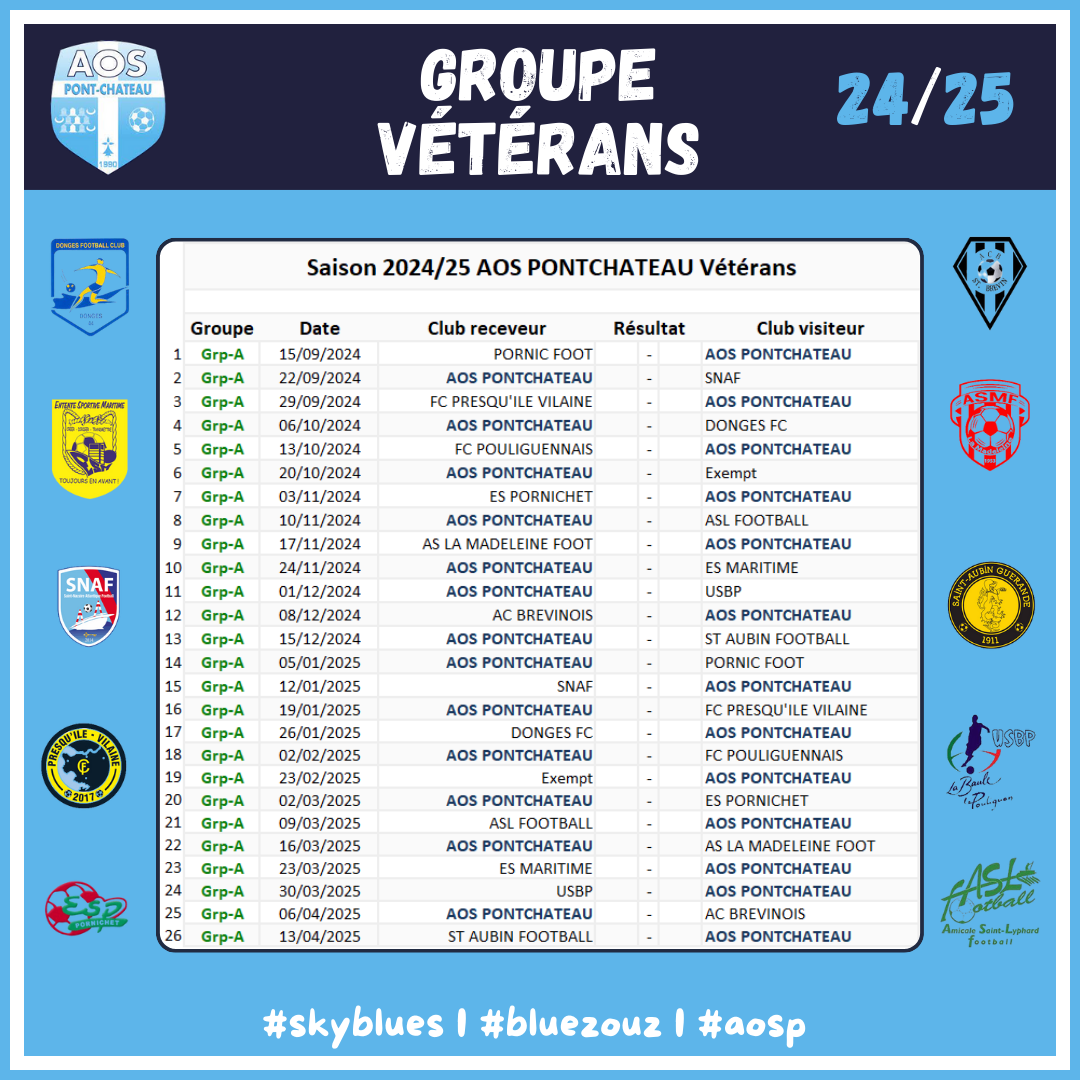 Retrouvez dans cette publication le groupe ainsi que le calendrier de la saison pour nos vรฉtรฉrans ๐